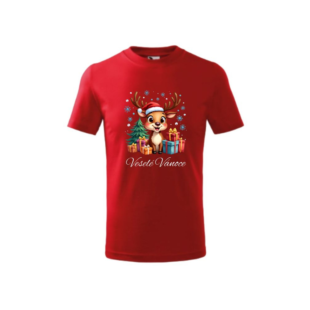 Dětské tričko s krátkým rukávem s motivem vánočního soba - Veselé Vánoce
