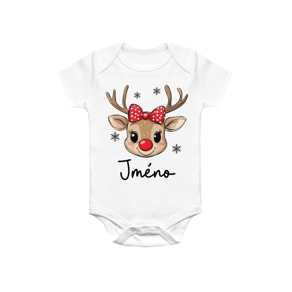 Připravte se na Vánoce s roztomilým bodyčkem pro malé slečny! Motiv soba s mašlí a možností přidání jména zaručeně vykouzlí úsměv na každé dětské tváři. Skvělé jako dárek nebo součást rodinného vánočního focení.