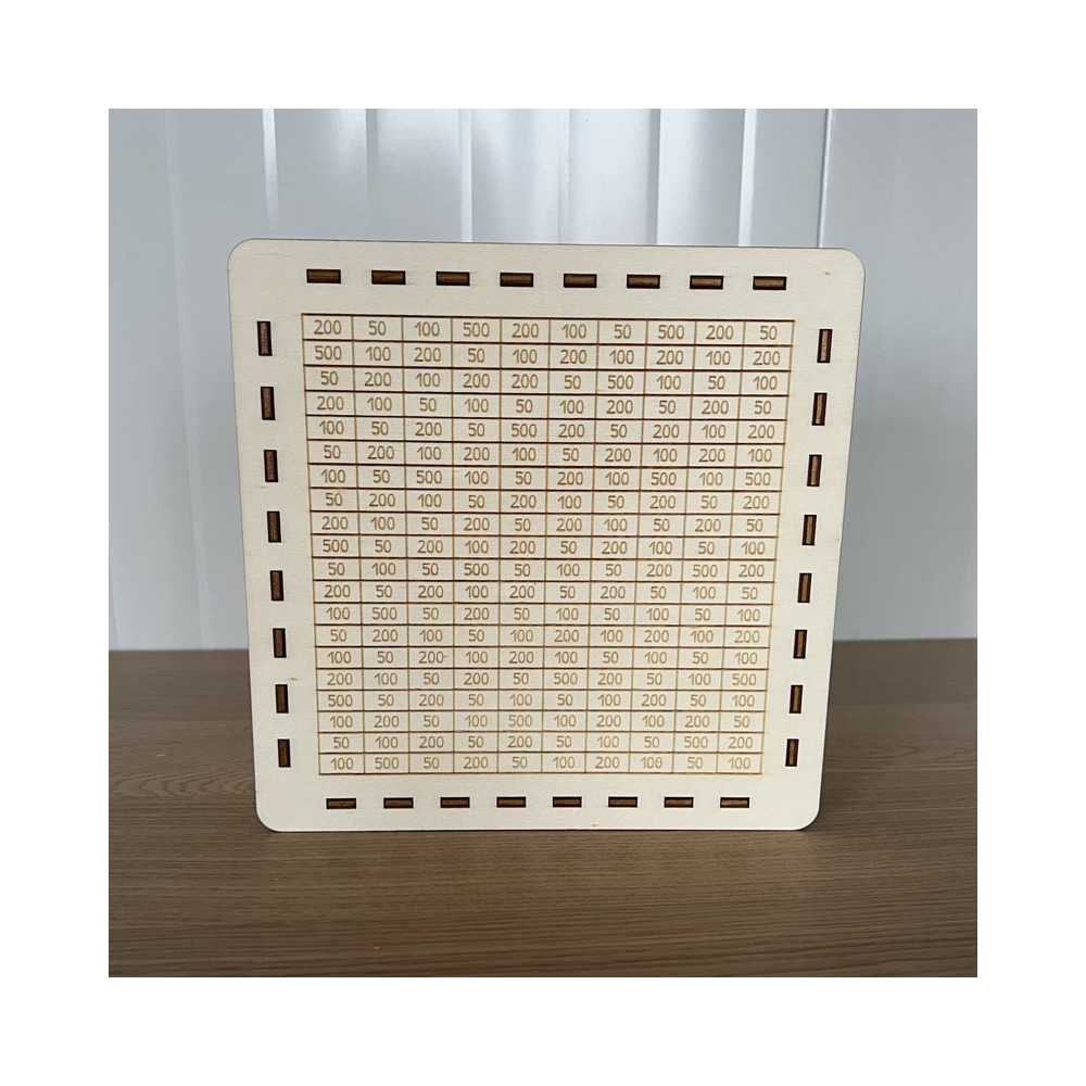 Dřevěná šetřící pokladnička "Krok za krokem k cíli 100 000,-" je skvělým pomocníkem pro zábavné a efektivní spoření. Pokladnička obsahuje tabulku s částkami 50, 100, 200, 500 a 1000 Kč, které si můžete postupně škrtnout podle vašich naspořených financí.