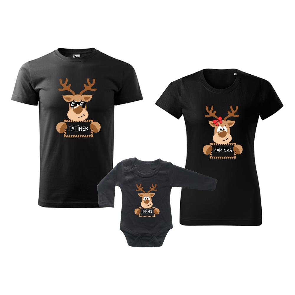 Vánoční rodinný set triček "Sobíci" + BODY