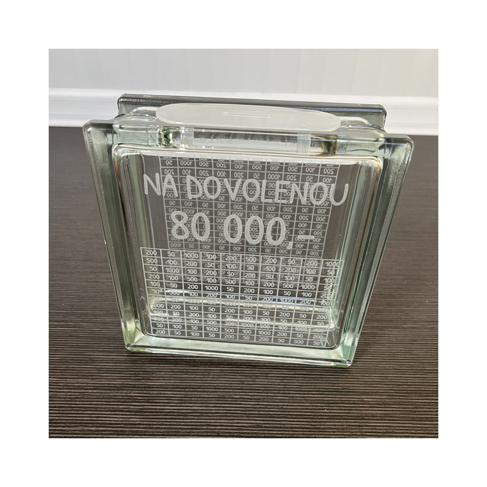 Stylová a originální skleněná kasička s cílem našetřit 80 000 Kč.